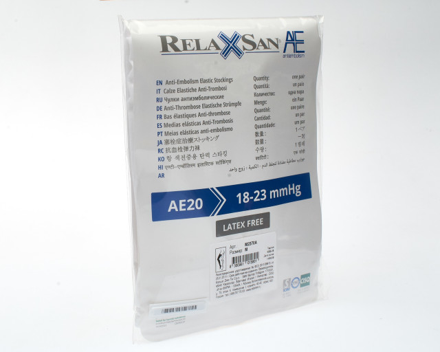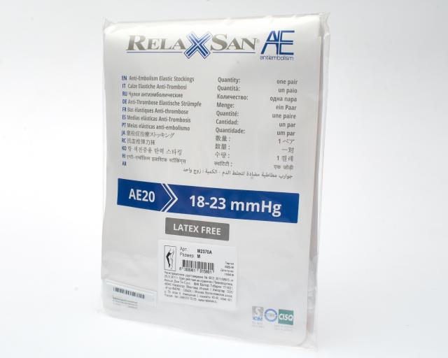 Антиэмболические чулки на резинке Relaxsan® Medicale арт. M2370А - с открывающимся мыском, давление 18-23 мм. рт. ст., I класс компрессии. Лечебные чулки с распределенным давлением, разработаны специально для предотвращения тромбоэмболических проблем. Отверстие под пальцами позволяет контролировать состояние кровообращения ног.
