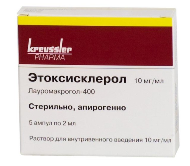 В зависимости от диаметра склерозируемой вены за одну инъекцию вводят 0,1-0,3 мл раствора Этоксисклерола 1%.