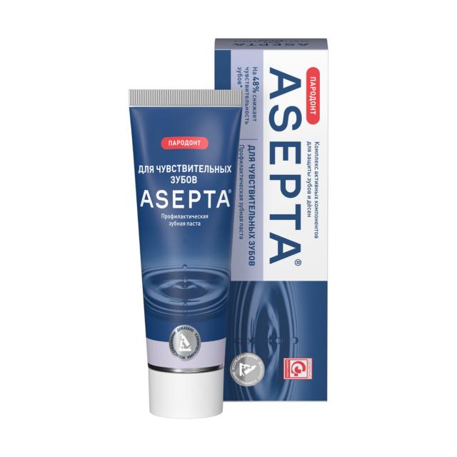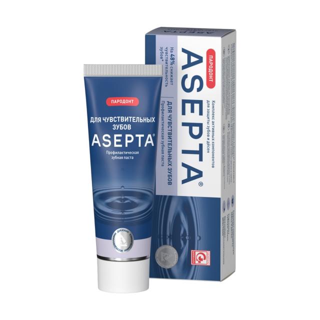Лечебно-профилактическаязубная паста АСЕПТА® SENSITIVE - предназначена для применения при повышенной чувствительности зубов и для защиты десен от кровоточивости ивоспаления