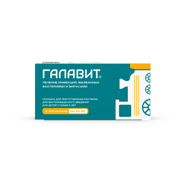 - при гнойных хирургических заболеваниях (ожоговых поражениях, рецидивирующем фурункулезе, хроническом остеомиелите, гангренозном аппендиците с оментитом, перитоните, гнойном плеврите): детям от 6 до 11 лет по одной инъекции 50 мг ежедневно – 5 дней, затем по одной инъекции 50 мг через день в течение 10 – 15 дней. Курс 10-15 инъекций; детям в возрасте 12-18 лет – лечение проводится по той же схеме в виде внутримышечных инъекций по 100 мг. При перевязках желательно наружное применение препарата Галавит в виде повязок со стерильными салфетками, смоченными 1 % раствором препарата в воде для инъекций (в повязки с болтушкой или водорастворимые мазевые повязки).