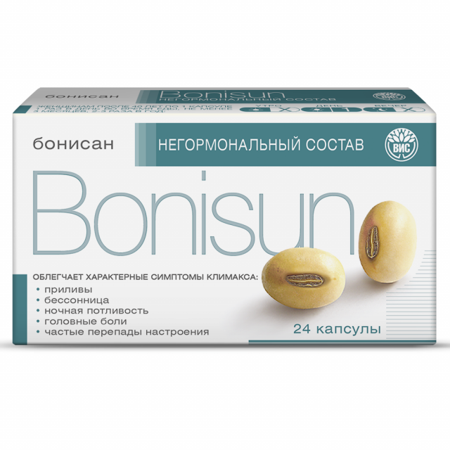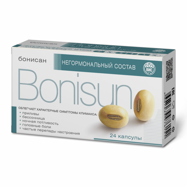 Капсулы «Бонисан» рекомендуются в качестве биологически активной добавки к пище – дополнительного источника изофлавонов. Капсулы облегчают характерные симптомы климакса (приливы, бессонница, ночная потливость, головные боли и частые перепады настроения).