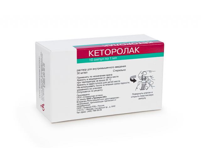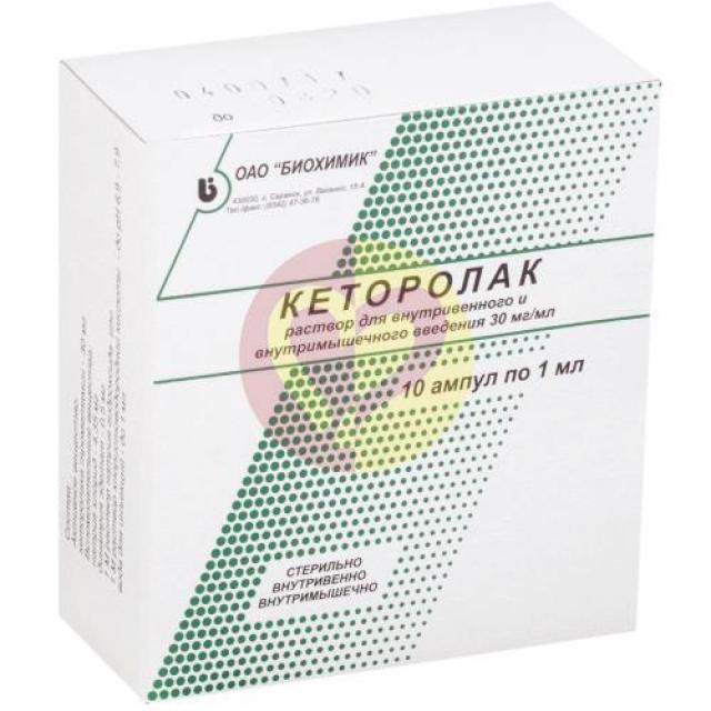 Кеторолак раствор внутривенно и внутримышечно 30мг/мл 1мл №10