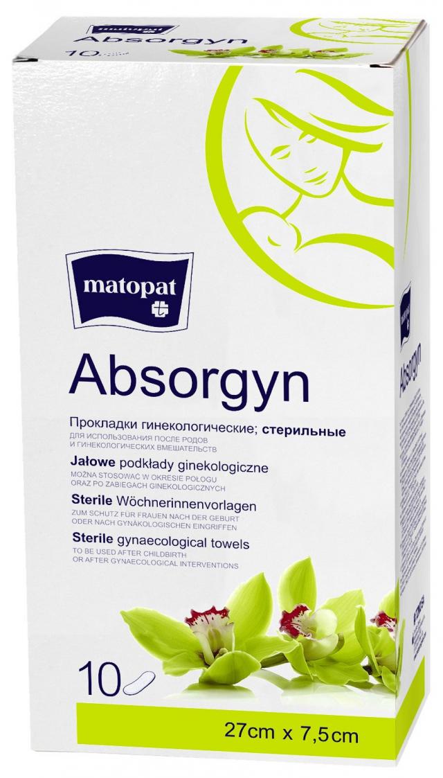 Гинекологические прокладки Absorgyn – впитывающее изделие, построено из мата из целлюлозы, который является впитывающей частью, обернутого тонкой гигиенической бумагой и нетканым материалом на поверхности. Изолирующей частью является лист пленки, размещенный в нижней части подклада между вкладом и бумагой. Доступны в версии с пленкой (непромокаемые) или без пленки, стерильные или не стерильные. Находят широкое применение в отделениях рожениц и гинекологических отделениях.