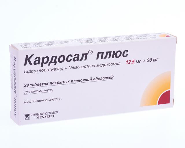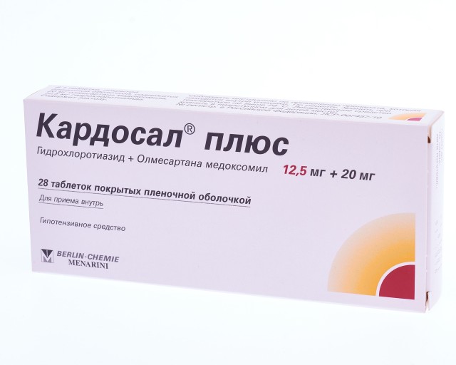 Максимальная доза препарата Кардосал® плюс составляет 20 мг олмесартана медоксомила и 25 мг гидрохлоротиазида 1 раз в сутки.