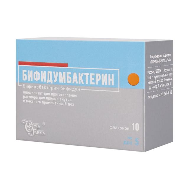 Бифидумбактерин лиофилизат для приготовления раствора внутрь 5 доз фл. №10