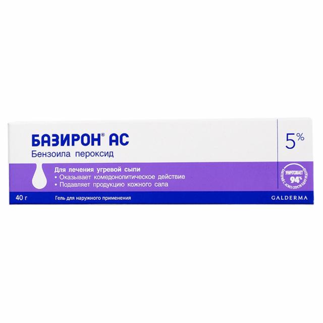 Базирон® АС 5%— гель для лечения угревой сыпи (прыщей), который подходит для жирной кожи. Препарат разработан специально для лечения акне и содержит бензоила пероксид — это вещество уже более ста лет успешно используется в отечественной и зарубежной медицине.