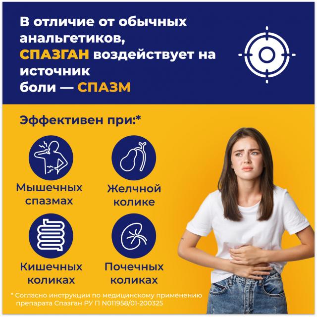 Спазган™ – комбинированный препарат, в состав которого входят: ненаркотический анальгетик метамизол натрия, миотропное спазмолитическое средство питофенон и м-холиноблокирующее средство фенпивериния бромид. Сочетание компонентов препарата приводит к взаимному усилению их фармакологического действия: облегчению боли, расслаблению гладких мышц и снижению повышенной температуры тела.