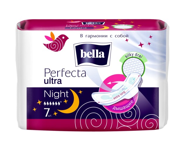 Описание: ультратонкие прокладки bella Perfecta ultra Night подарят ощущение комфорта и уверенность в любой ситуации. Они имеют толщину всего 2 мм, незаметны даже под облегающей одеждой, но надёжно защищают от протеканий. Рекомендуется использовать во время сна или при обильных выделениях, так как прокладка имеет удлиненную* форму и повышенную* впитываемость. Боковые крылышки с 3 клеевыми полосками обеспечивают качественную фиксацию к белью. Нежное и шелковистое покрытие-сеточка silky drai моментально впитает влагу, оставляя поверхность сухой, а декоративное тиснение способствует равномерному и быстрому впитыванию жидкости, которую надежно удерживает внутри прокладки суперабсорбент, предотвращая появление запаха. Специальная система SEP обеспечивает дополнительную защиту от протеканий. "Дышащие" свойства прокладки и отсутствие латекса сводят к минимуму риск возникновения раздражений.