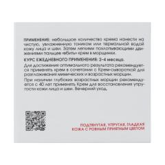 Результат: Курс ежедневного применения: 2-4 месяца. После полного курса применения глубина морщин уменьшается, а кожа выглядит гладкой и подтянутой.