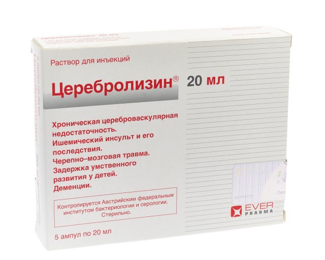 Церебролизин содержит низкомолекулярные биологически активные нейропептиды, которые проникают через гематоэнцефалический барьер и непосредственно поступают к нервным клеткам. Препарат обладает органоспецифическим мультимодальным действием на головной мозг, т.е. обеспечивает метаболическую регуляцию, нейропротекцию, функциональную нейромодуляцию и нейротрофическую активность.