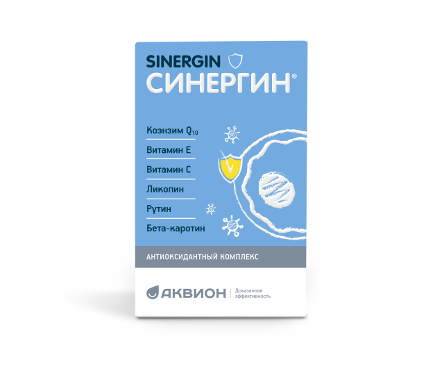 В состав Синергина входят как водорастворимые, так и липофильные антиоксиданты, что дает возможность нейтрализовать свободные радикалы во всех клетках и тканях организма.