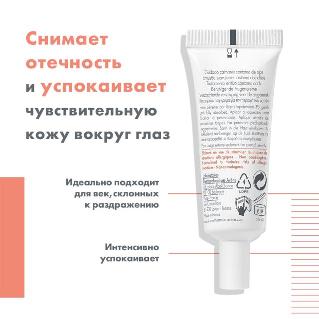 Avene Soothing eye contour cream (Авен Успокаивающий крем для контура глаз) - для всех типов кожи и чувствительной кожей, гелеобразная консистенция, без запаха.