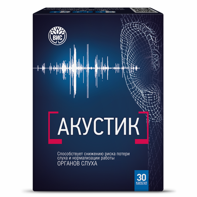 Капсулы «Акустик» способствуют нормализации работы органов слуха, снижению риска потери слуха. Рекомендуются в качестве биологически активной добавки к пище - источника флавонолгликозидов, кверцетина, ресвератрола, коэнзима Q10, витаминов и минералов.