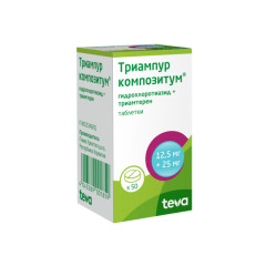 действующие вещества: триамтерен 25,000 мг, гидрохлоротиазид 12,500 мг;