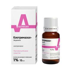 Клотримазол-Акрихин раствор наружный 1% 15мл