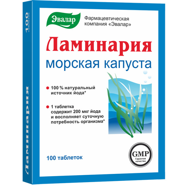 Ламинария таблетки 200мг Эвалар №100