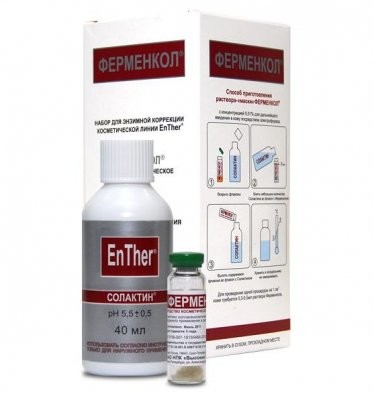 Исходя из клинической формы, возраста, площади и глубины рубца применяют растворы Ферменкол® различной концентрации. Рекомендуемая концентрация для коррекции келоидных рубцов составляет 0,5-1 мг/мл, для гипертрофиеских — 0,1-0,2 мг/мл.
