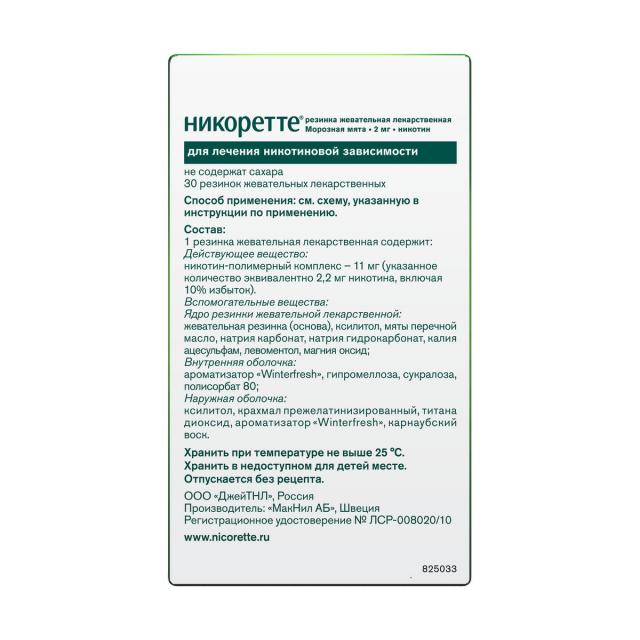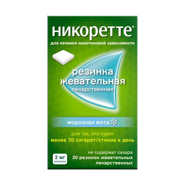 Никоретте резинка жевательная морозная мята 2мг №30