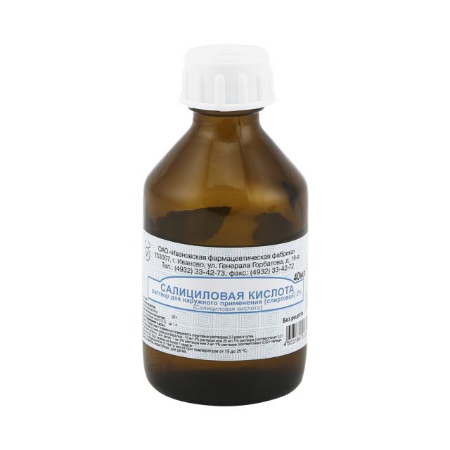 Наружно. Обрабатывают пораженную поверхность спиртовым раствором 2-3 раза в сутки. Максимальная суточная доза для взрослых - 10 мл 2 % раствора или 20 мл 1 % раствора (соответствует 0,2 г салициловой кислоты), для детей - 1 мл 2 % раствора или 2 мл 1 % раствора (соответствует 0,02 г салициловой кислоты). Курс лечения - не более 1 недели.