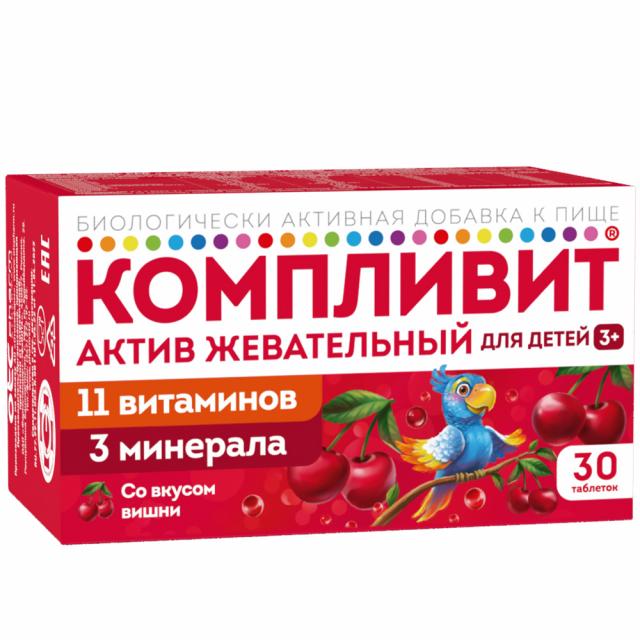 Компливит Актив для детей таблетки жевательные Вишня №30
