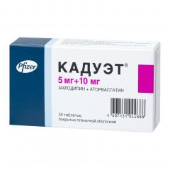 Кадуэт таблетки покрытые оболочкой 5мг+10мг №30
