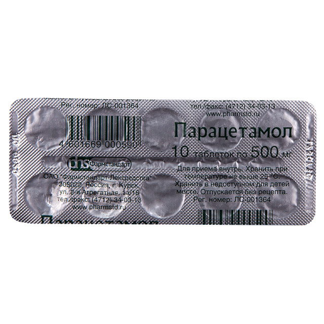 Действующее вещество: парацетамол – 500,0 мг;