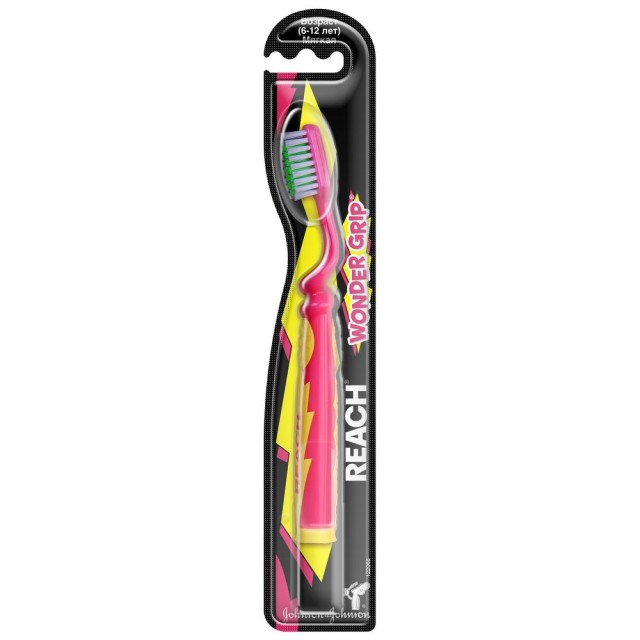 Зубная щетка REACH® Wonder Grip ages 6-12 с ярким дизайном разработана специально для детей от 6 до 12 лет. Мягкая щетина, изготовленная из высококачественного волокна, отлично подходит для нежных детских зубов и десен. Удобная толстая ручка и маленькая головка обеспечивают эффективное очищение.