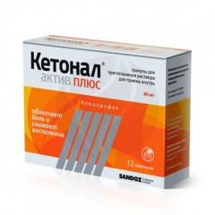 Действующее вещество: кетопрофен лизина (кетопрофена лизиповая соль) 80 мг (эквивалентно кетопрофеиу 50 мг).
