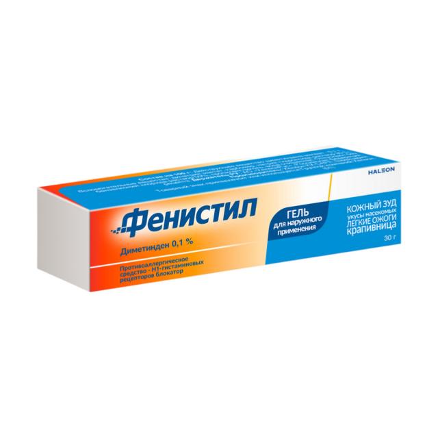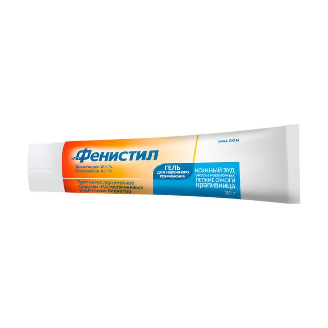 Фенистил Гель уменьшает зуд и раздражение, вызванные кожно-аллергическими реакциями.* Он применяется при кожных реакциях, вызванных укусками насекомых, поверхностными ожогами легкой степени, солнечными ожогами, дерматозами, крапивницей.* Начинает действовать через несколько минут и обладает легким охлаждающим эффектом.* Подходит для применения с 1 месяца жизни.