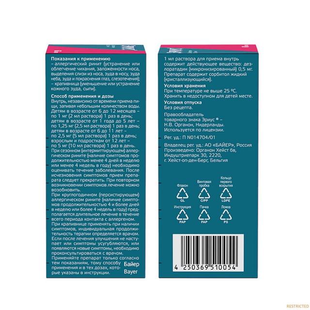 Эриус раствор для внутреннего применения 0,5мг/мл 60мл