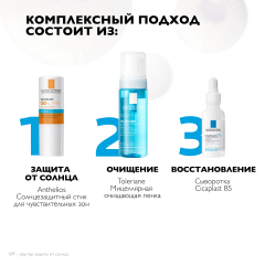 Очень высокая степень защиты от UVA- и UVB-лучей. Подходит для участков кожи лица, крайне чувствительных к солнцу. Удобно взять с собой. Водоустойчивая формула