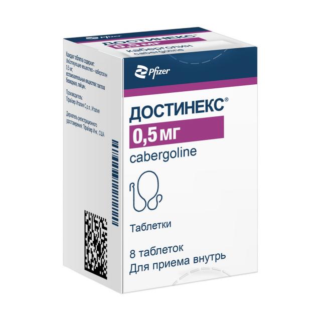 для снижения уровня пролактина при других заболеваниях (гиперпролактинемия): необходимо сначала принять одну таблетку 0,5 мг одной дозой или разделить на две дозы в течение одной недели (например, половина таблетки в понедельник, а вторая половина таблетки в четверг). Затем врач может постепенно увеличивать дозу, чтобы определить дозу, необходимую для контроля Ваших симптомов. Максимальная доза составляет 4,5 мг (9 таблеток Достинекс 0,5 мг) в неделю.
