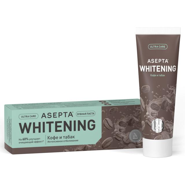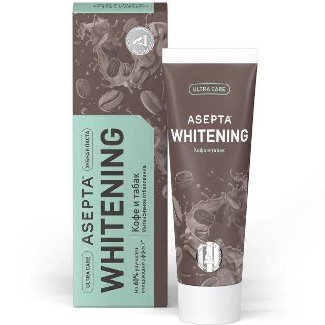 Белые зубы и здоровая слизистая без сухости и воспаления теперь доступны самому широкому кругу любителей кофе, чая, табака и красного вина. Зубная пасте Асепта Plus Кофе и табак заботится о здоровье десен и эффективно осветляет эмаль зубов каждый день, поэтому даже при регулярном употреблении красящих продуктов зубы сохраняют привлекательный природный оттенок, а слизистая полости рта восстанавливается быстрее и не страдает от сухости.