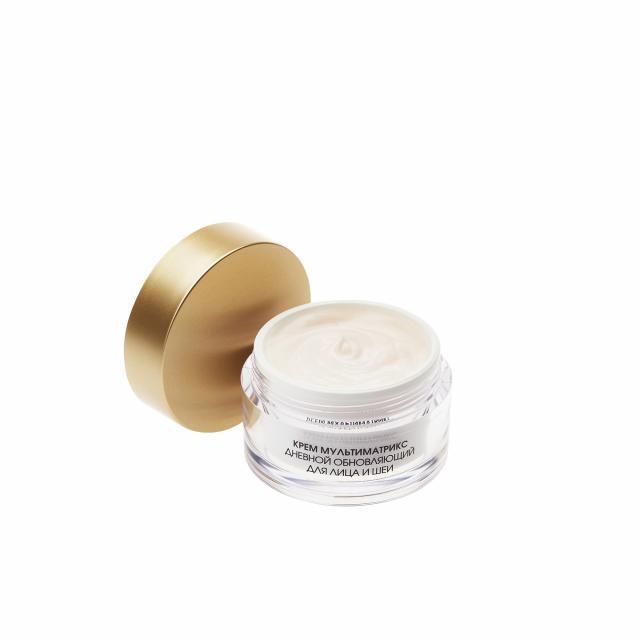 Уникальные компоненты, включенные в состав дневного обновляющего крема для лица и шеи мультиматрикс запускают в тканях механизмы, тормозящие раннее старение кожи.