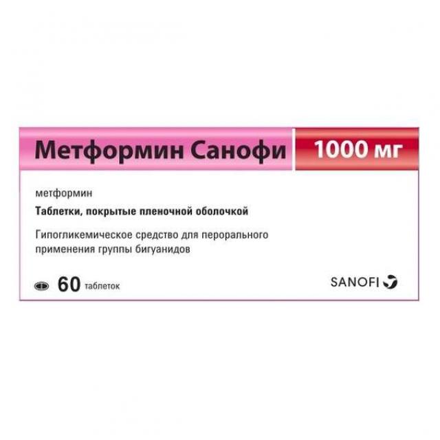 Метформин Санофи таблетки покрытые оболочкой 1000мг №60