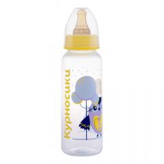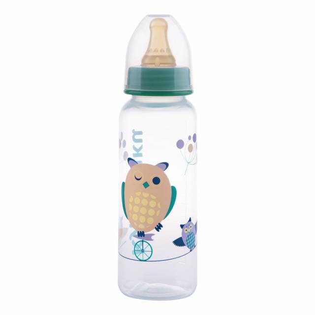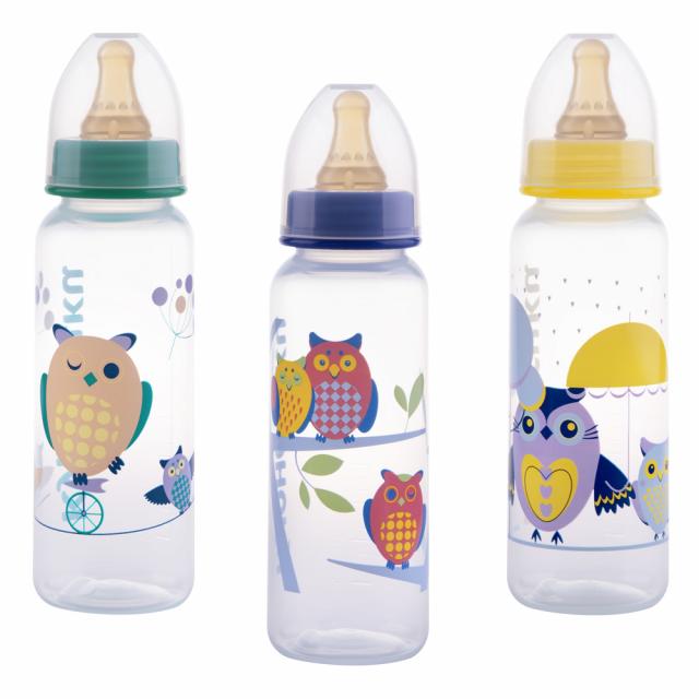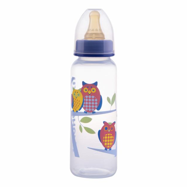 Бутылочка прямая с латексной соской без ручек "Совы" ассорти, 250 мл - 11006