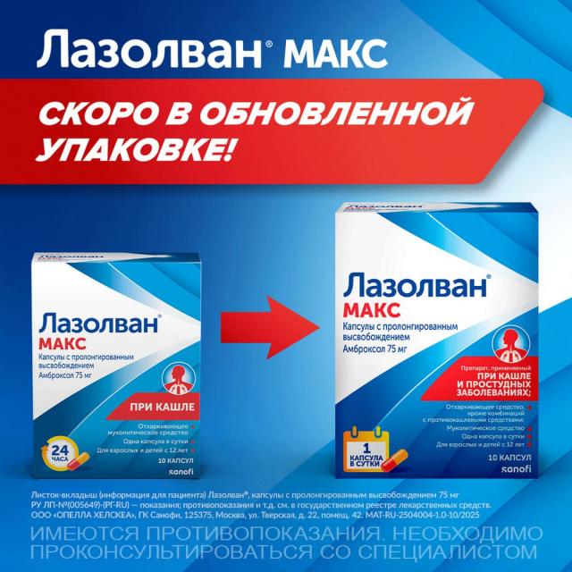 Лазолван Макс капсулы пролонгированные 75мг №10