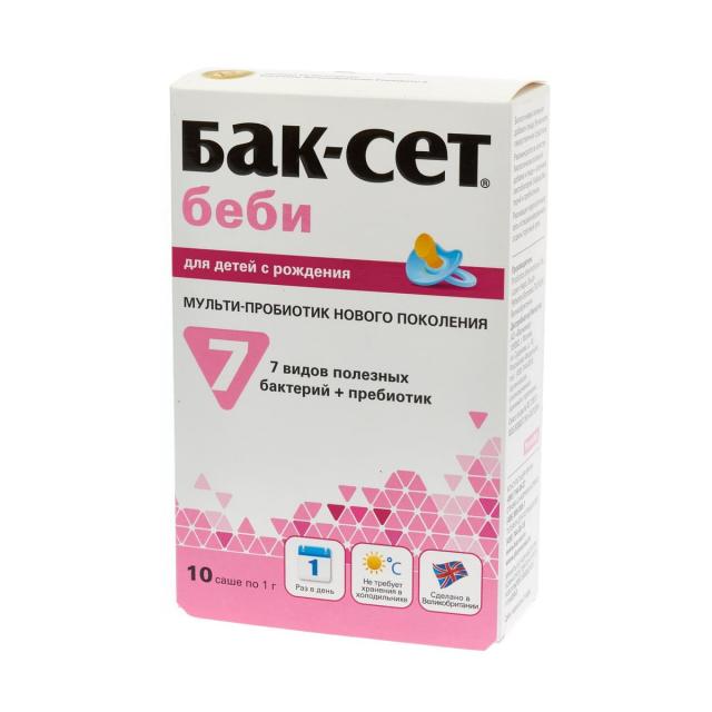 2. Универсальность применения при диарее, коликах, пищевой аллергии и диатезе у детей грудного и раннего возраста. У каждого вида пробиотических бактерий в разной степени выражены те или иные полезные свойства: при дисбалансе микробиоты нарушения носят самый разнонаправленный характер, поэтому один вид бактерий не всегда может успешно справиться с разнообразными нарушениями. В состав Бак-Сет Беби входят 7 разных видов пробиотиков, которые взаимно дополняют друг друга и действуют многофункционально. Также комплекс обогащен пребиотиком, который создает благоприятные условия для роста собственных полезных бактерий.