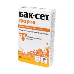 Универсальность применения при различных нарушениях пищеварения и аллергии у детей старше 3-х лет и взрослых. У различных видов пробиотиков в разной степени выражены те или иные полезные свойства. Один единственный вид не в состоянии справиться с разнообразными нарушениями пищеварения. Поэтому в состав Бак-Сет форте входят 14 видов пробиотиков, которые взаимно дополняют действие друг друга.