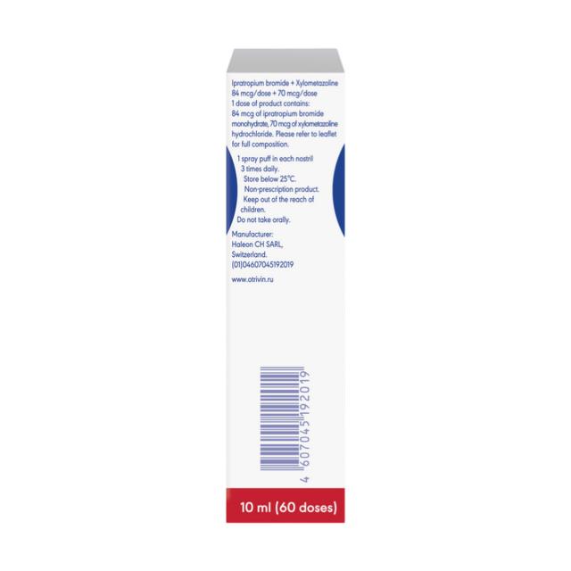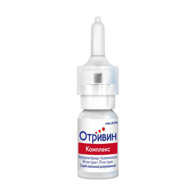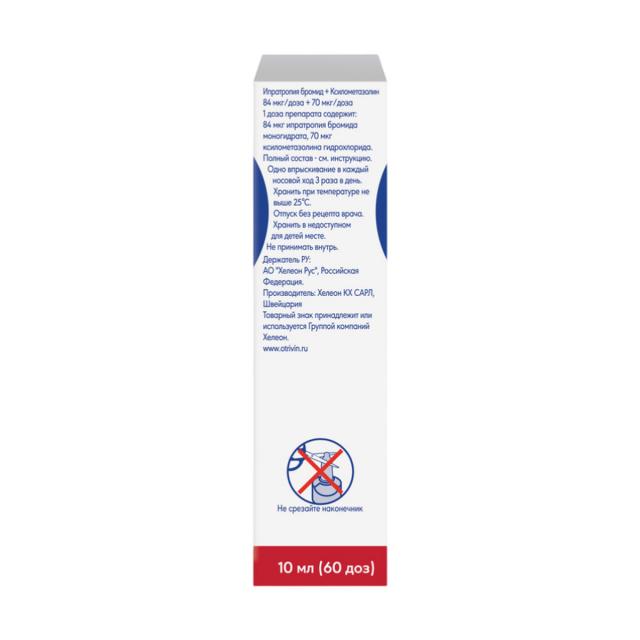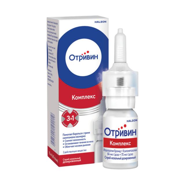 1 впрыскивание препарата Отривин® Комплекс содержит около 70 мкг ксилометазолина гидрохлорида и 84 мкг ипратропия бромида.