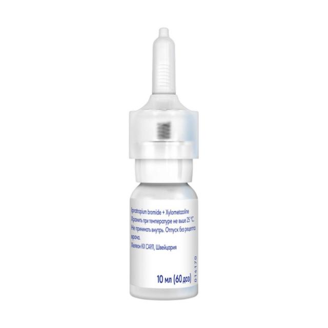 Действующие вещества: пратропия бромид моногидрат 0.6 мг, ксилометазолина гидрохлорид 0.5 мг.