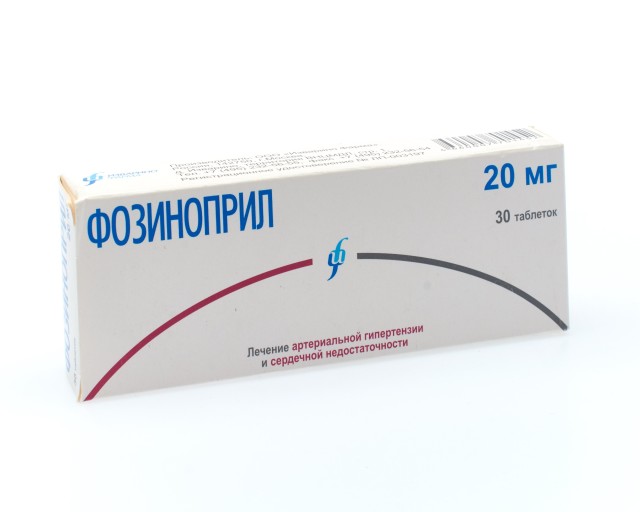 Активное вещество: фозиноприл натрия - 20,00 мг.