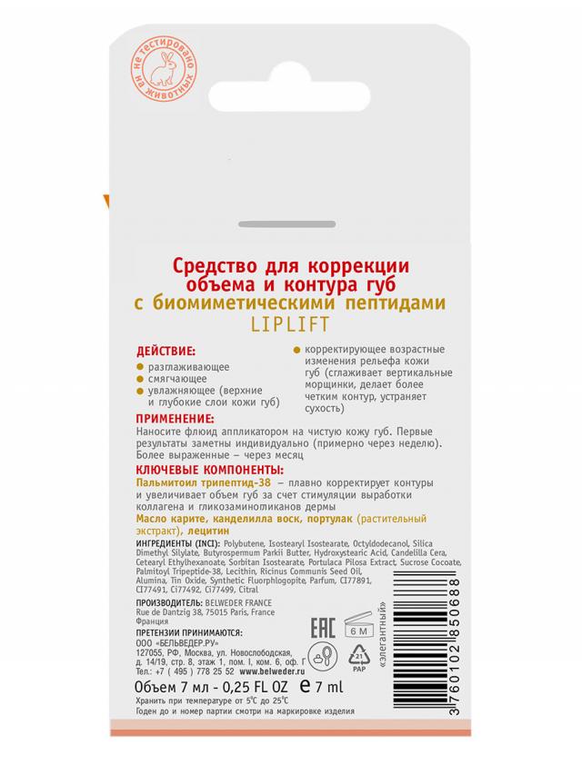 Бельведер средство для губ для коррекции объема и контура пептиды 7мл
