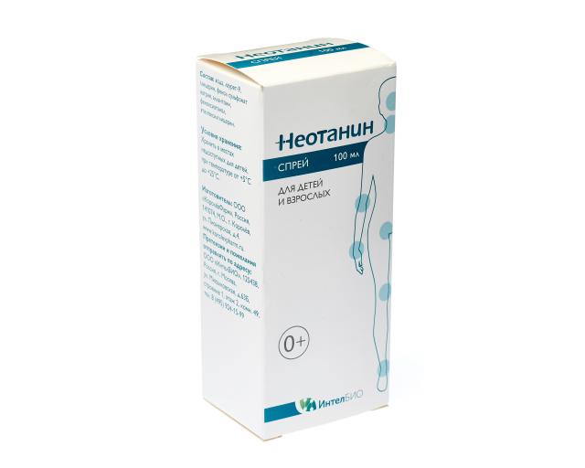 Основным активным компонентом Неотанина является синтетический танин. Танины относятся к веществам, оказывающим вяжущее, подсушивающее действие благодаря способности связывать и осаждать протеины (белки). Синтетический танин оказывает противовоспалительное действие (устраняет зуд, отек и покраснение), оказывает противомикробное действие, ускоряет заживление.