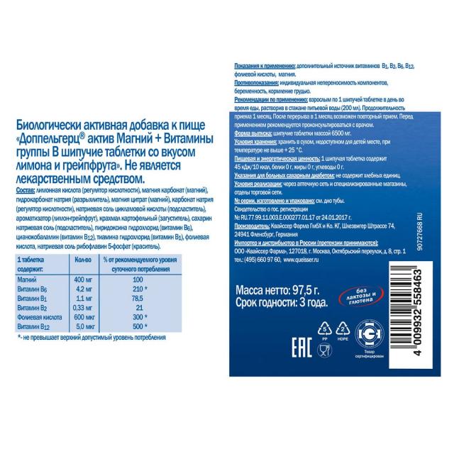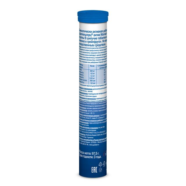 Доппельгерц актив Магний+Витамины группы B таблетки шипучие лимон/грейпфрут №15