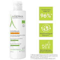 А-Дерма Экзомега Гель смягчающий пенящийся (A-Derma Exomega Emollient Foaming Gel) - для атопичной, чувствительной, сухой кожи. Возрастная категория для любого возраста. Артикул: C28521. Нежная кремообразная пена легко распределяется по коже. Эмолент (Смягчающий пенящийся гель), шелковая текстура масла, имеет нежную гипоаллергенную отдушку.