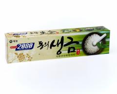 Гелевая зубная паста на основе биосолей и экстрактов целебных трав, применяемых в традиционной восточной медицине. Содержит цветки жимолости, сушенный одуванчик полевой, полынь, ромашку, тимьян, сосновое масло для стимуляции кровообращения в деснах, придания упругости и эластичности деснам, профилактики заболеваний. Еще с древних времен люди применяли соль для чистки зубов, соль укрепляет и уплотняет ткани десны. Витамин Е. Воспаление, вздутие и кровоточивость десен могут стать причиной неприятного запаха изо рта и потери зубов. Витамин Е (альфа токоферола) стимулирует кровообращение в деснах, препятствует образованию гингивита и неприятного запаха. Улучшает состояние десен в целом. Пантенол (Витамин В5) поддерживает регенерацию клеток, оптимизирует клеточный обмен и увеличивает количество делящихся клеток. Смягчает, обладает противовоспалительным действием.