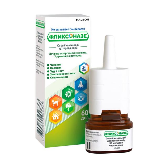 Представляет собой назальный спрей для облегчения симптомов круглогодичного и сезонного аллергического ринита. Действующее вещество – флутиказона пропионат.