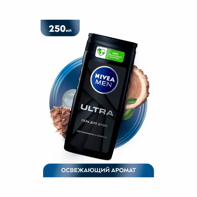 Круто, когда под рукой всегда есть средство, эффективно ухаживающее за тобой. Выбирай гель для душа ULTRA из линейки NIVEA MEN! Его инновационная формула содержит белую глину, благодаря которой гель глубоко очищает кожу. Гель для душа NIVEA Men ULTRA дарит УЛЬТРА очищение, благодаря инновационной формуле с натуральной глиной, а стильный аромат с глубокими древесными нотами обеспечивает бодрящий заряд свежести. Сбалансированный pH не сушит кожу.