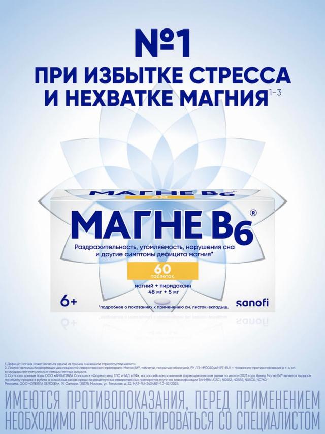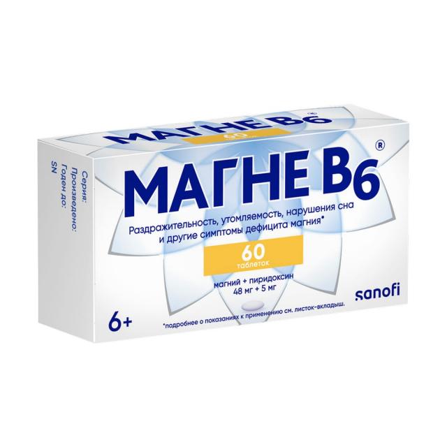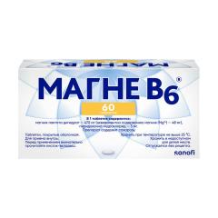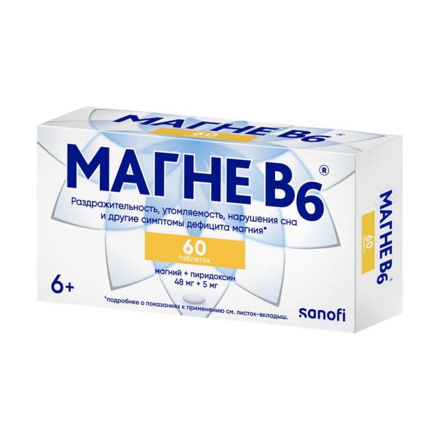 В частности, он участвует в регуляции передачи нервных импульсов и в сокращении мышц. Организм получает магний вместе с пищей. Недостаток магния в организме может наблюдаться при нарушении режима питания (диета) или при увеличении потребности в магнии (при повышенной физической и умственной нагрузке, стрессе, беременности, применении диуретиков). Пиридоксин (витамин В6) участвует во многих метаболических процессах, в регуляции метаболизма нервной системы.